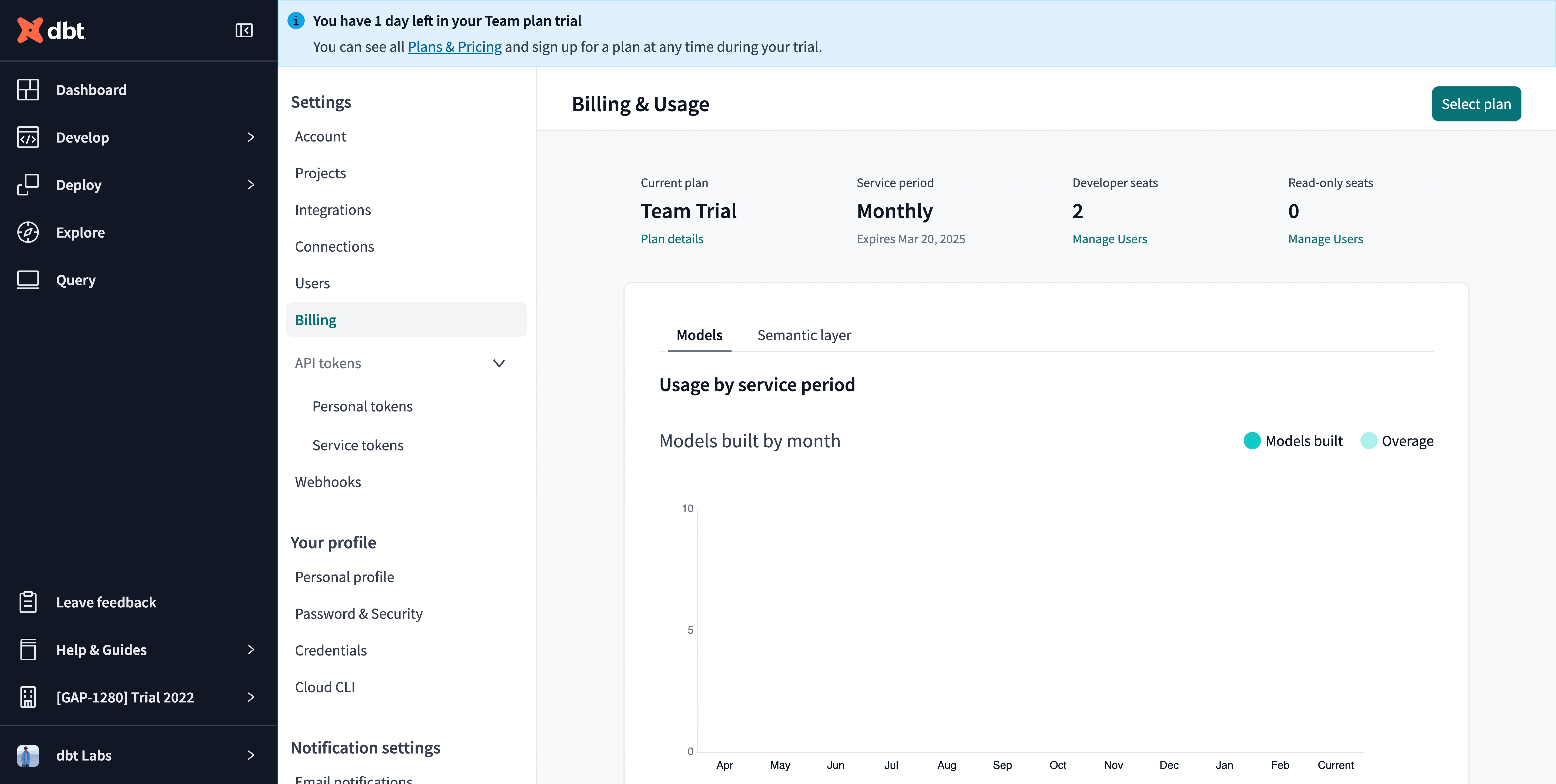 dbt offers several plans with different features that meet your needs. This document is for dbt admins and explains how to select a plan in order to continue using dbt.